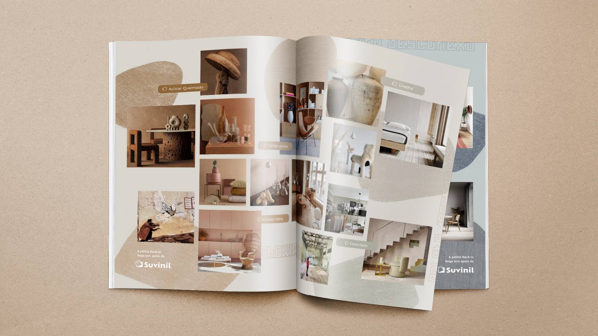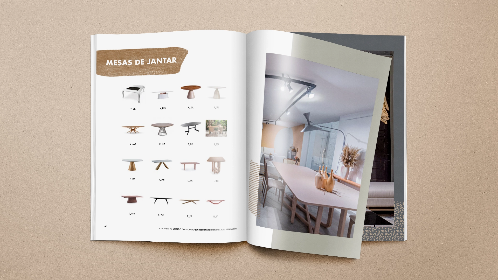 Catálogo de produtos do showroom 2020 da Desconexo Design. A inspiração para a identidade do showroom foi o resgate da estética bege monocromática dos países soviéticos (1950-1980’s) misturado com texturas naturais e orgânicas tendência dos anos 2020.