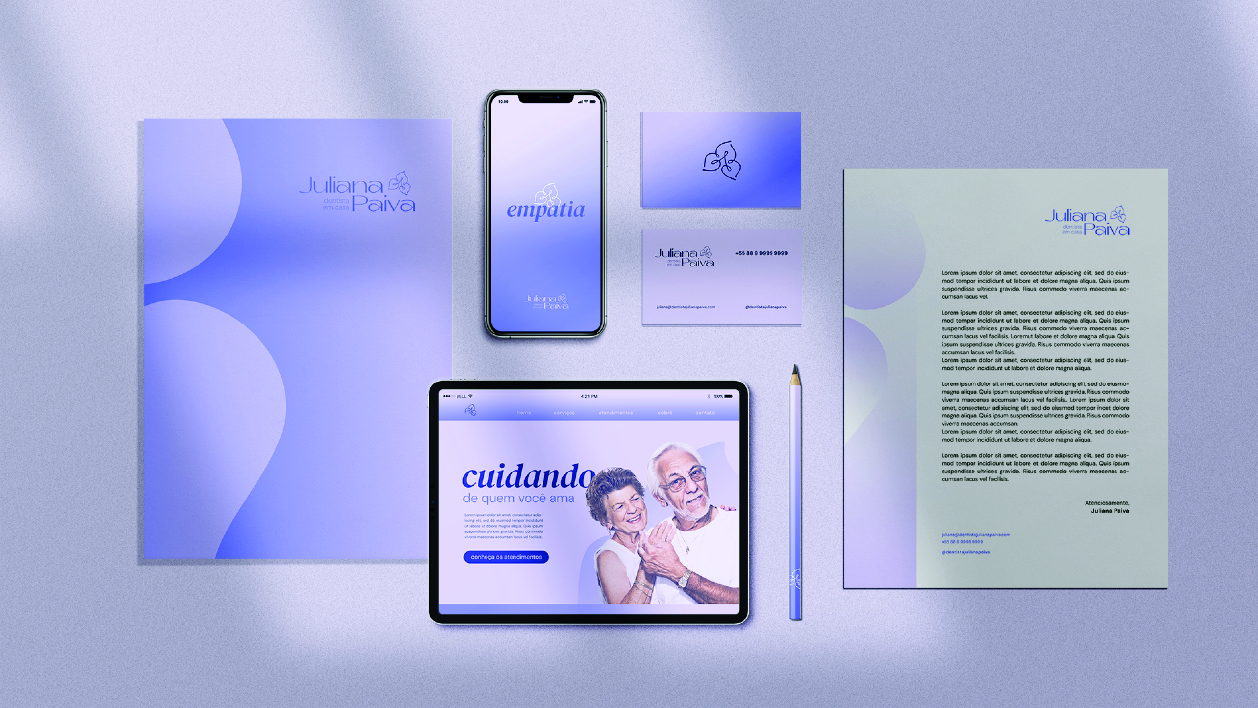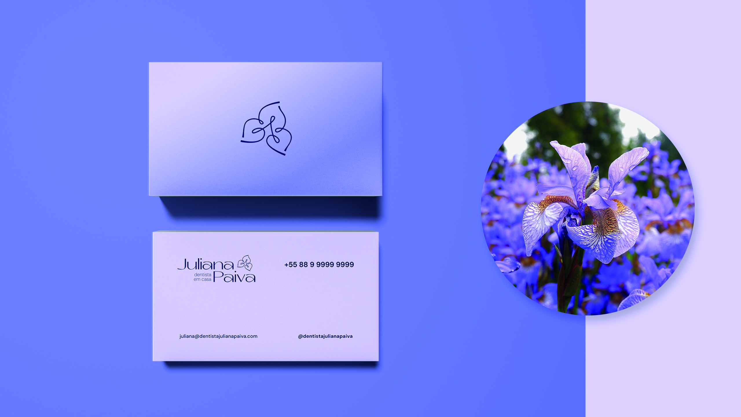 Sabendo que a Juliana é apaixonada pelas plantas e jardins, a inspiração para a marca veio da flor de íris, planta de 3 pétalas que é símbolo de sabedoria, fé, coragem e vida, palavras que também se encaixam muito bem nos princípios que regem a vida pessoal e profissional dela. O símbolo e redução da marca é, então, justamente a junção da flor de íris, dos laços (criados entre profissional e paciente) e da casa (atendimento homecare).