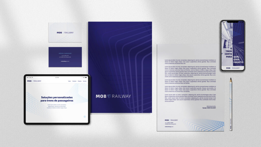 MOB Railway é uma empresa de soluções para trens de passageiros. O rebranding da marca se baseou nos pilares da ADAPTABILIDADE, VELOCIDADE e CONFIANÇA. Esses conceitos que se manifestam tanto no símbolo do logo, quanto nos elementos gráficos, trazendo a ideia de movimento e mudança, como cada projeto requer uma solução personalizada.