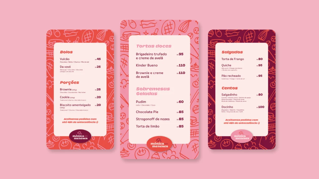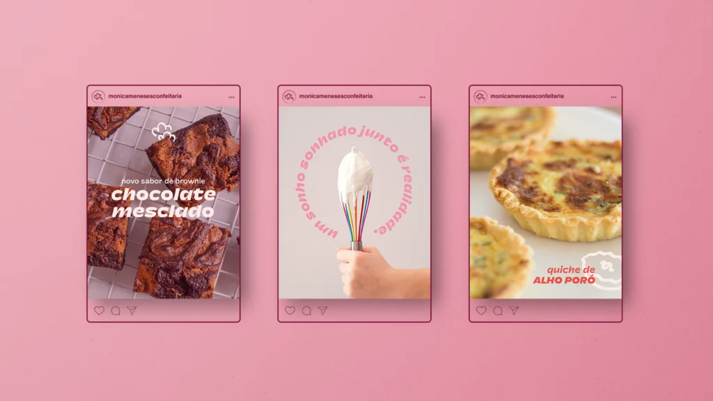 Para a Mônica, trabalhar com confeitaria era um sonho cultivado há décadas, que finalmente virou realidade. Com o rebranding, o nome do negócio passou de Cakes da Kaká para Mônica Meneses – Confeitaria Artesanal, marcando essa nova fase com mais sofisticação e autoridade no assunto. Não apenas um pequeno negócio, mas uma assinatura da confeiteira que coloca muito amor e autenticidade nas suas criações para dar vida aos doces sonhos de suas clientes.