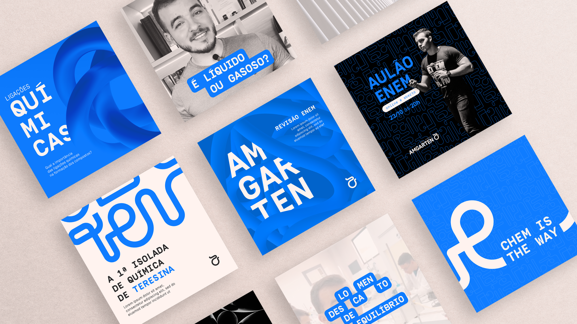 Rebranding para o professor de química Gabriel Amgarten, pra quem já havíamos feito a primeira versão há alguns anos atrás. Nessa nova versão, aprimoramos os conceitos de assistência ao aluno e didática descomplicada que já eram inspiração pra 1ª identidade, mas agora com uma cara mais adulta e moderna, que nem nosso prof! O monograma AMGARTEN foi inspirado nos sistemas de laboratório químico, que representam o processo contínuo e eficaz de transformação de uma substância. assim como é o processo de aprendizado com ele.